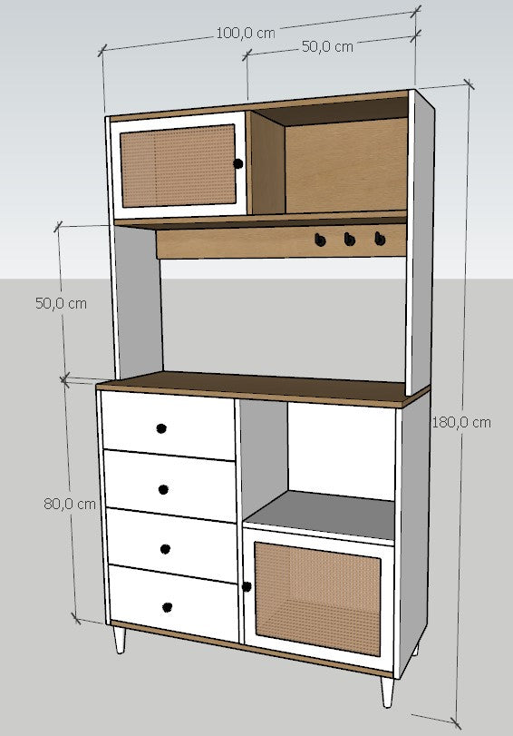 Nosta Kahve Köşesi, kahve tutkunları için hem şık hem de kullanışlı bir mobilyadır. Doğal rattan hasır kapakları, beyaz gövdesi ve ahşap üst tablasıyla mutfağınıza ya da salonunuza sıcak bir hava katar. Çekmeceleri, rafları ve dolap bölmeleri sayesinde kahve makinenizden fincanlarınıza kadar tüm kahve eşyalarınızı düzenli şekilde saklayabilirsiniz.